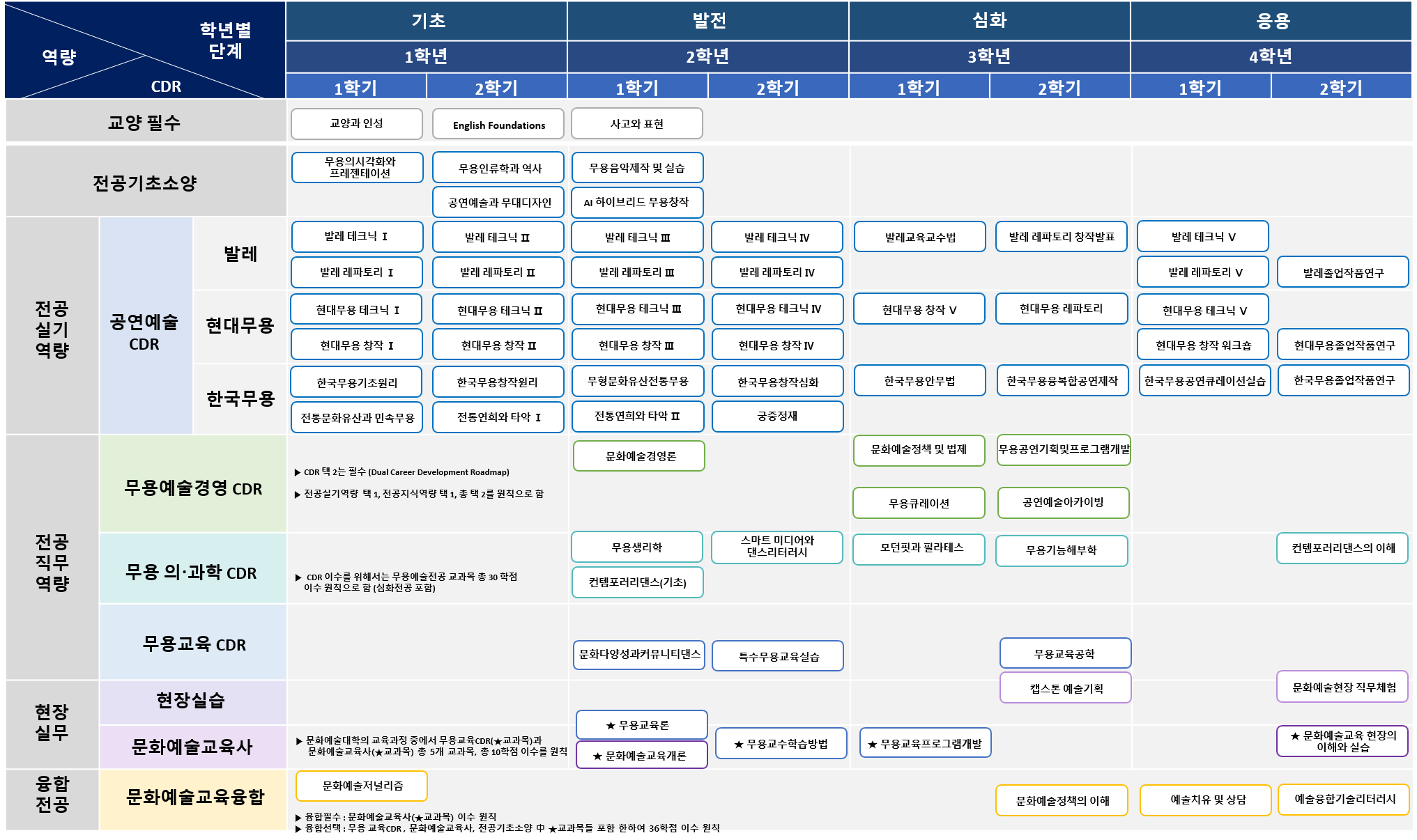 - [학사] 2025학년도 학부 무용예술전공 이수체계도