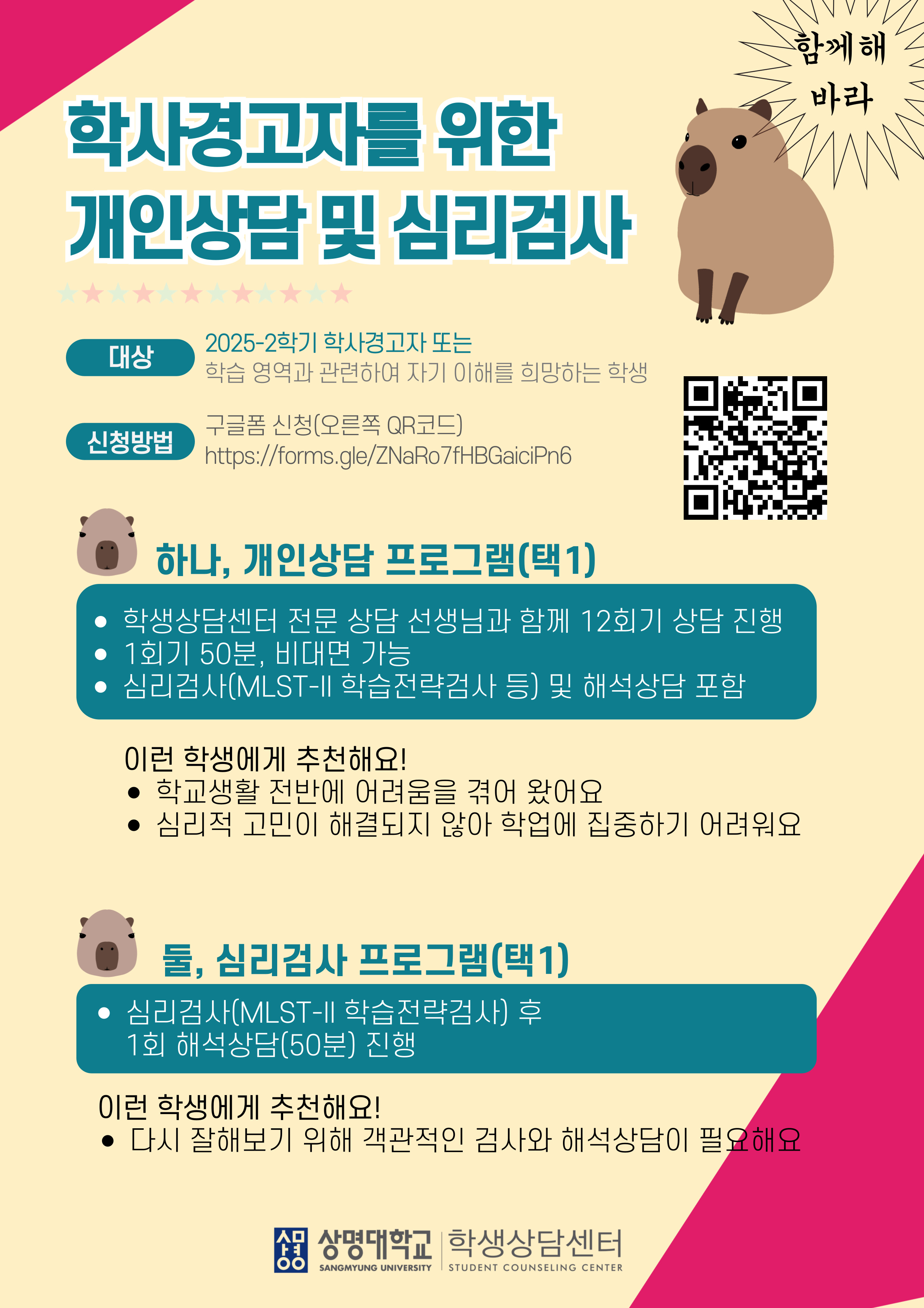 2025학년도 제2학기 학사경고자 면담 및 프로그램 시행 안내